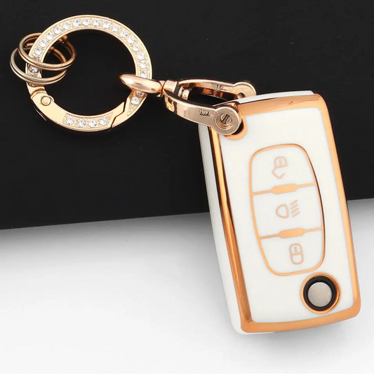 Classic Collection | Car Key Cover Compatible with Citroën C4 Picasso, C4 Cactus, C3 & more – 3-Button Smart Key Case