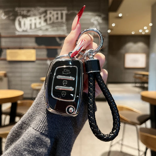Elegant Collection | Key Fob Cover for Hyundai i20, i30, Tucson, Santa Fe (2013-2019) & more | 3-Button Flip Key Case