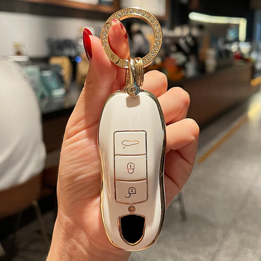 Elegant Collection | Key Cover Fob Case Suitable for Porsche Panamera Cayenne Macan 911 Boxster Cayman & More